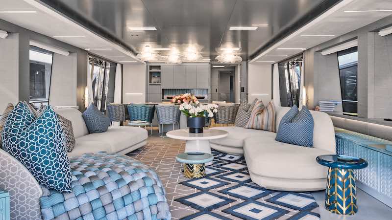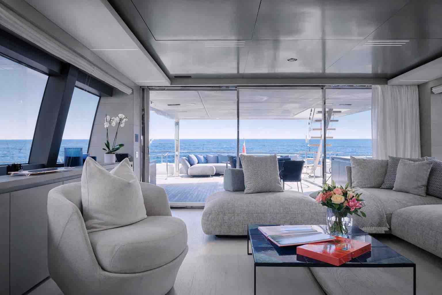 À bord, chaque espace invite à la détente et à la contemplation. Les vastes ponts extérieurs offrent des lieux de vie baignés de lumière, idéals pour les déjeuners face à l’horizon, les après-midi au soleil ou les soirées au mouillage, dans une atmosphère douce et feutrée.