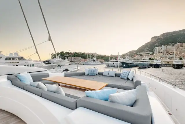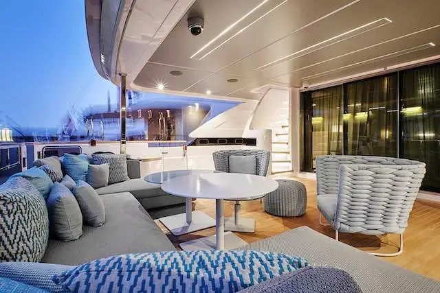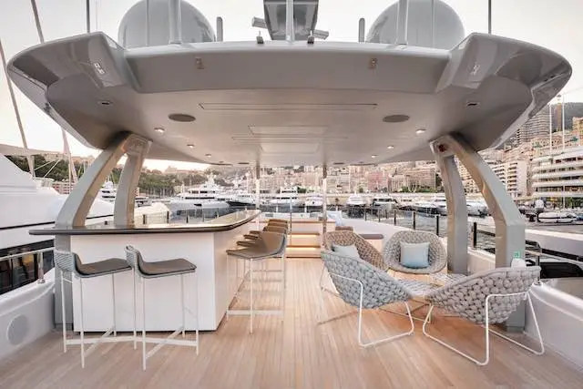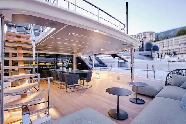 À bord, le luxe se vit dans la sérénité. Le sundeck, vaste et ouvert sur l’horizon, accueille un jacuzzi et un bar, invitant à la détente et à la contemplation.